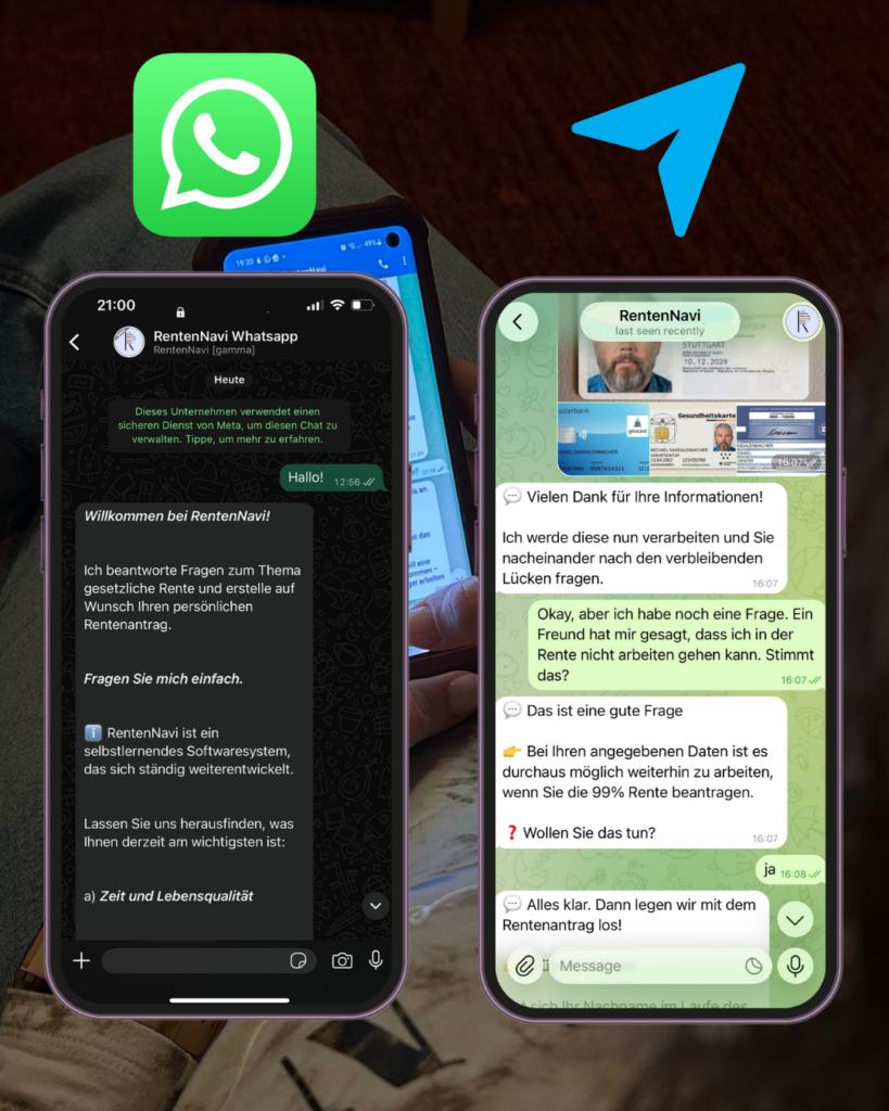 Ihre Renten-Bürokratie wird für Sie so einfach, wie ein paar Nachrichten im Messenger zu schreiben.